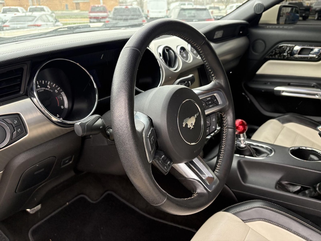 Beneath the hood lies a beastly 5.0L Ti-VCT V8 engine, unleashing a formidable 435 horsepower. Paired with a precise 6-speed manual transmission, you're in complete control of the Mustang's raw power. The Rear Wheel Drive configuration, enhanced by a Torsen mechanical limited slip differential, ensures optimal grip and exhilarating acceleration, whether you're navigating the open highway or enjoying a spirited drive on winding roads near Paris. The Driver Control Ride Control Suspension allows you to tailor the driving dynamics to your preference, ensuring a comfortable yet engaging experience. The engine block heater is ready to ward off the winter chills.