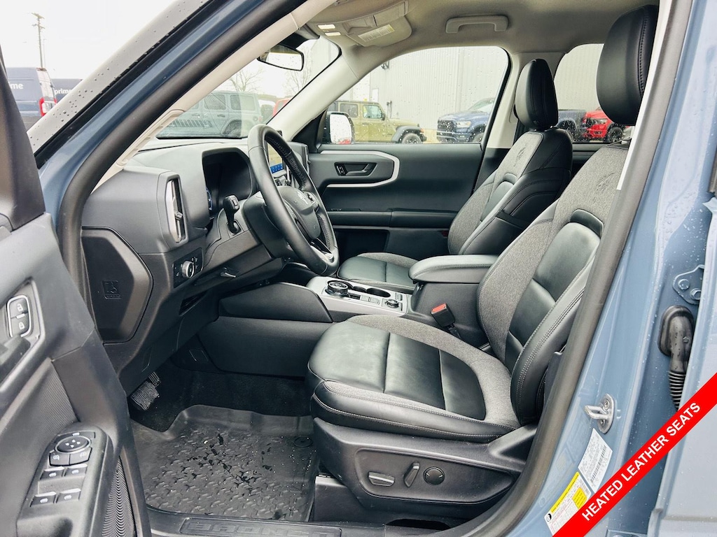 The interior of the 2024 Ford Bronco Sport Big Bend is designed with your comfort and convenience in mind. The cloth and leatherette front seat upholstery provides a stylish and comfortable seating surface, while the heated front seats keep you warm and cozy on chilly mornings. The automatic climate control system ensures a comfortable cabin temperature for all passengers, regardless of the weather outside. With ample cargo space and convenient features like the cargo area concealed storage and cargo tie-downs, you'll have no problem hauling groceries, sports equipment, or luggage for your next road trip. The 60-40 folding rear seats provide added flexibility for carrying larger items, and the full floor console with covered storage keeps your belongings organized and out of sight. Plus, features like power door locks, power windows, and remote keyless entry add to the overall convenience and ease of use.