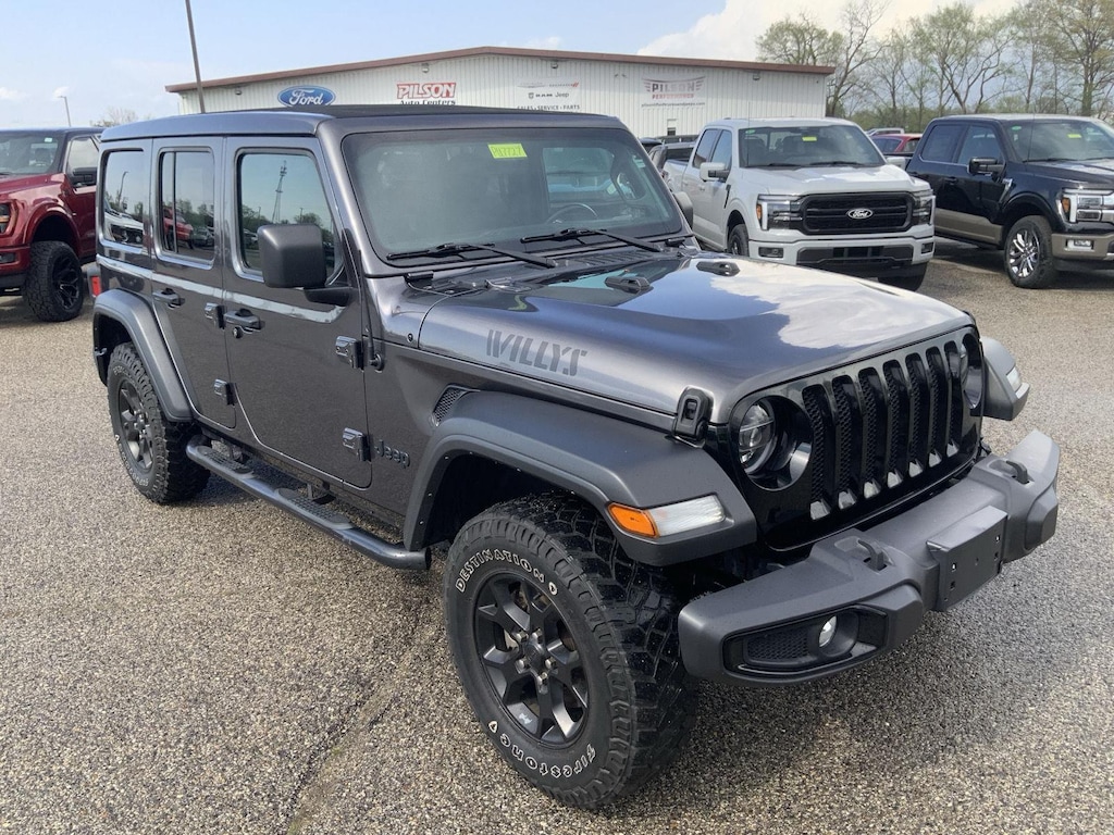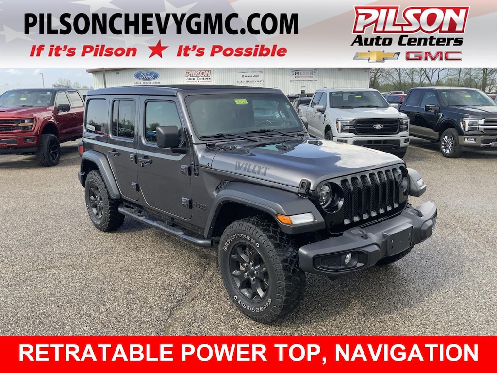 ENGINE: 2.0L I4 DOHC DI TURBO W/ESS, TRANSMISSION: 8-SPEED AUTOMATIC (850RE), QUICK ORDER PACKAGE 22W WILLYS, 3.45 REAR AXLE RATIO, WHEELS: 17" X 7.5" MOAB BLACK ALUMINUM, TIRES: LT255/75R17C, GRANITE CRYSTAL METALLIC CLEARCOAT, BLACK, CLOTH LOW-BACK BUCKET SEATS, GVWR: 5,400 LBS, 8.4" RADIO & PREMIUM AUDIO GROUP, CONVENIENCE GROUP, TECHNOLOGY GROUP, COLD WEATHER GROUP, SUN AND SOUND PACKAGE, JEEP TRAIL RATED KIT, MANUFACTURER'S STATEMENT OF ORIGIN, RADIO: UCONNECT 4C NAV W/8.4" DISPLAY, SIRIUSXM SATELLITE RADIO, ALPINE PREMIUM AUDIO SYSTEM, 2-DOOR PASSIVE ENTRY, FRONT DOOR LOCKS
