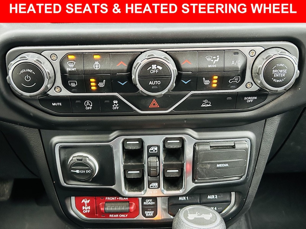 The 2023 Jeep Wrangler Rubicon's interior is designed for both comfort and rugged utility. Sink into the premium cloth low-back bucket seats after a long day. The heated front seats and heated steering wheel provide welcome warmth on chilly mornings. With dual-zone automatic climate control, you and your passenger can dial in your preferred temperatures.